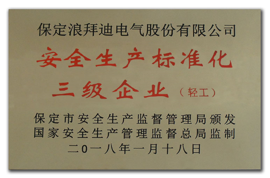 2017年12月13日,保定市高新区安监局组织外审专家小组对我公司进行企业安全生产标准化三级审核验收工作。经过评审,我公司以71.6分通过了评审,获得了安全生产标准化三级企业认证。我公司为企业安全生产标准化所做的工作获得了外审专家的一致认可,同时也激励我们继续做好安全生产标准化工作。