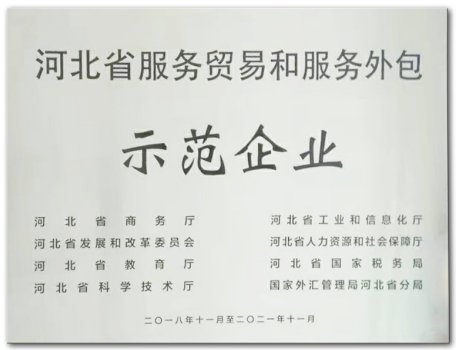 我公司荣获河北省服务贸易和服务外包示范企业。