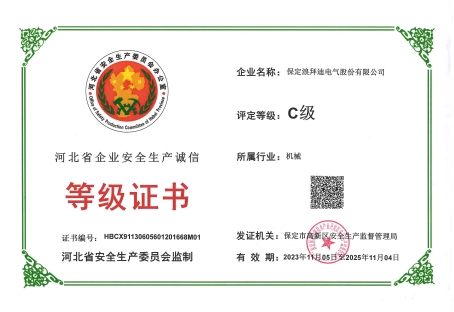 2023年度保定市机械生产企业诚信评定结果揭晓,经企业申报,高新区安全生产监管局评审、核定,保定乐鱼官方网站 - 乐鱼(中国)获诚信等级认证。
