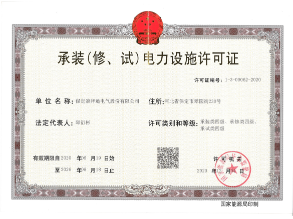 承装、承修、承试电力设施许可证